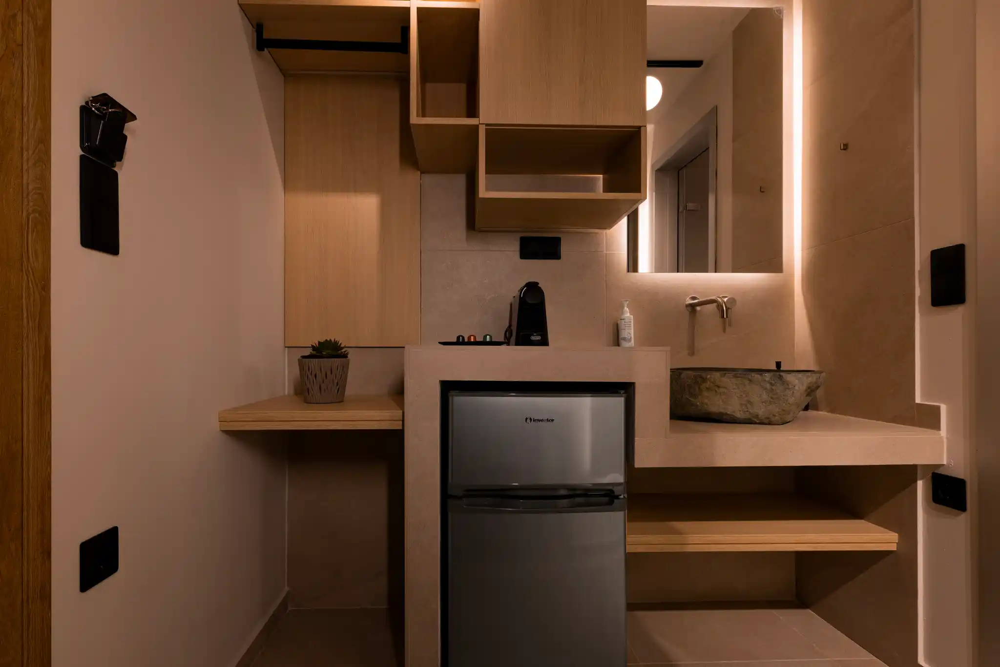 The Deluxe Double Room 02, with a total area of 19 sq.m., is located on the ground floor, offers maximum comfort and can accommodate up to 2 guests. It is the ideal choice for couples and visitors seeking high-quality accommodation with premium amenities.