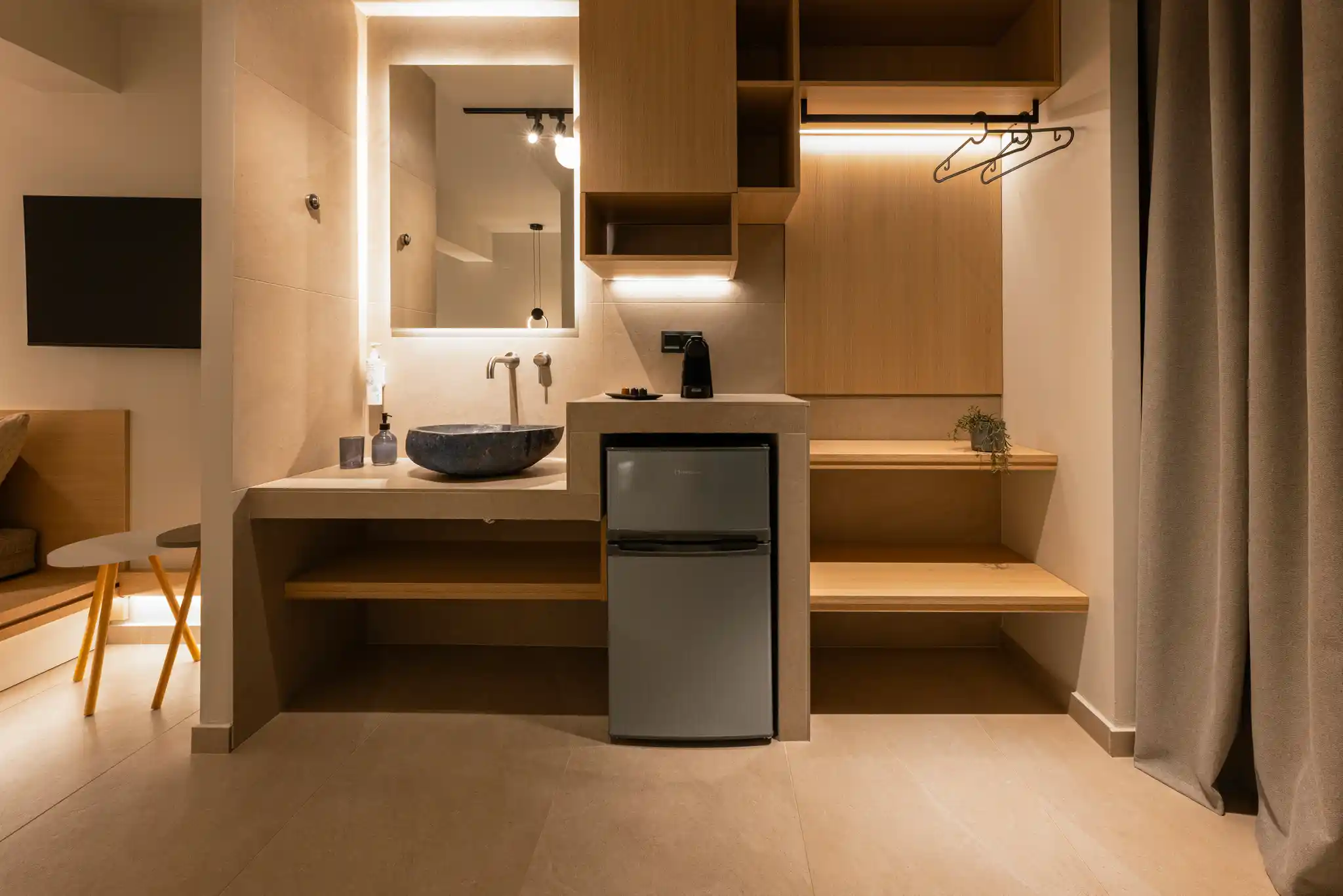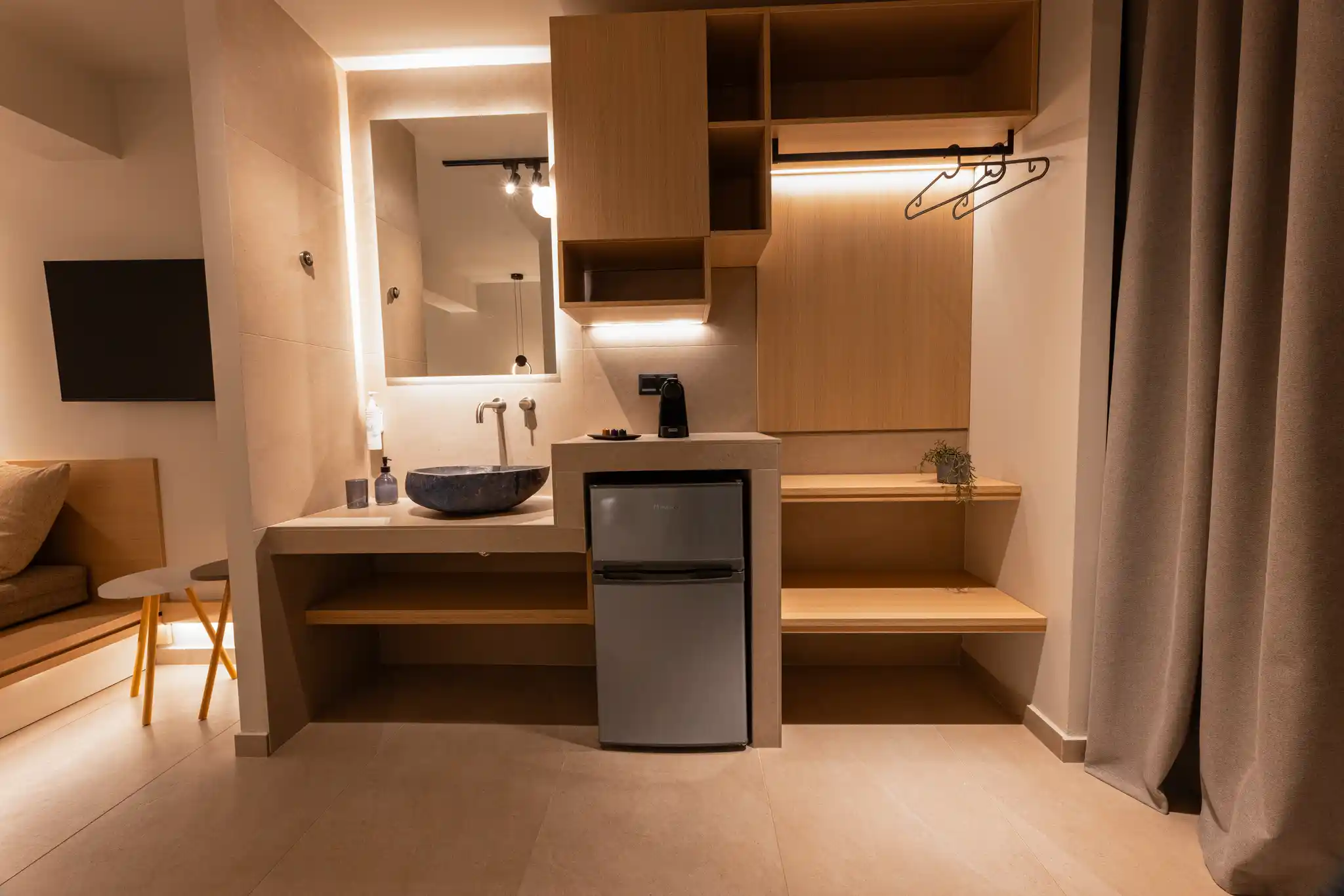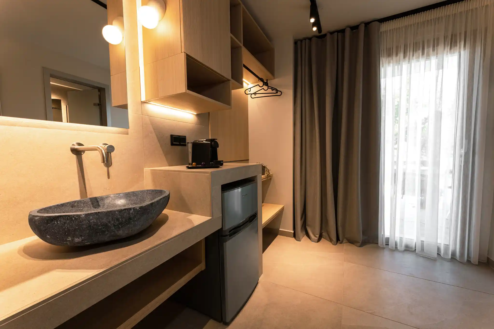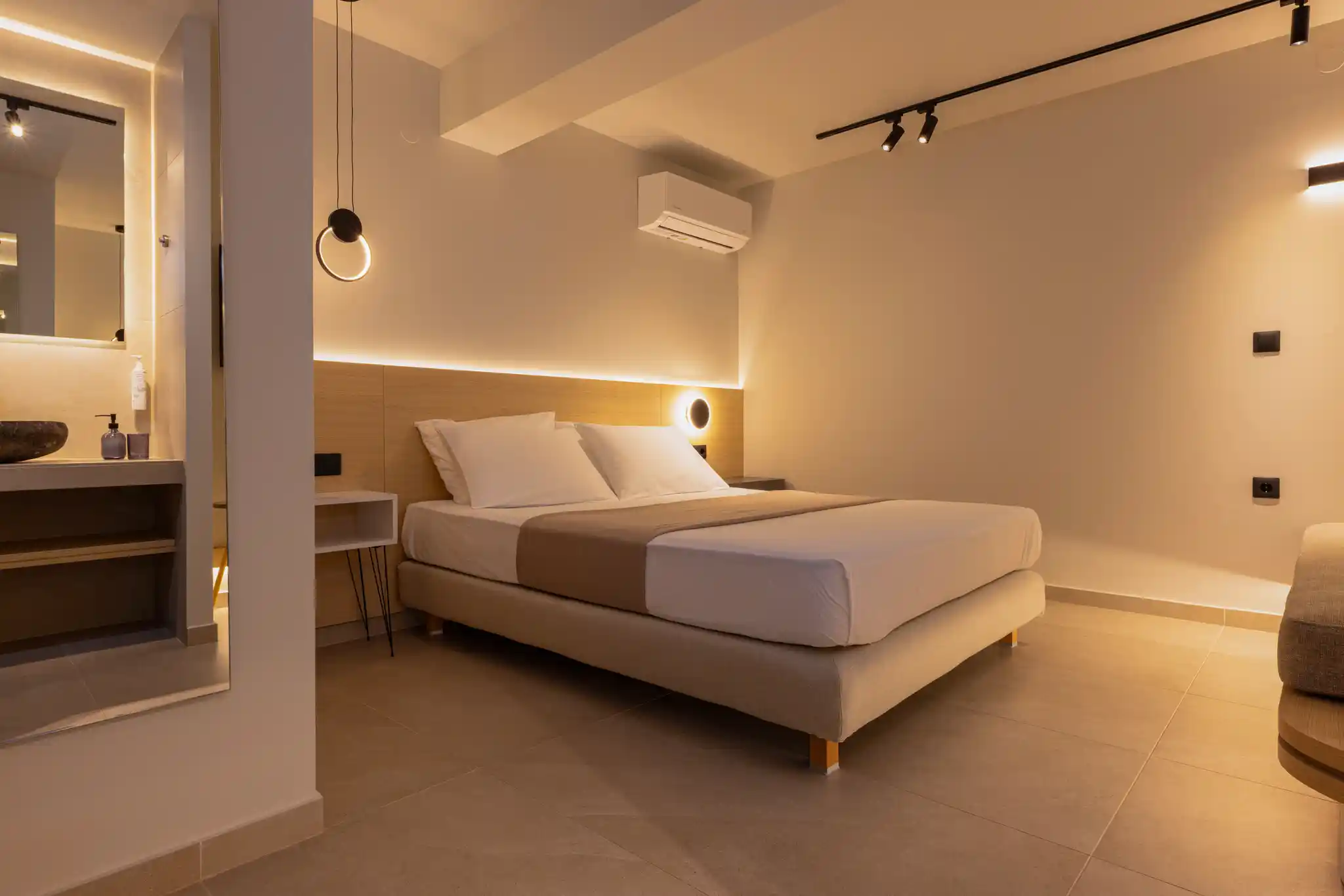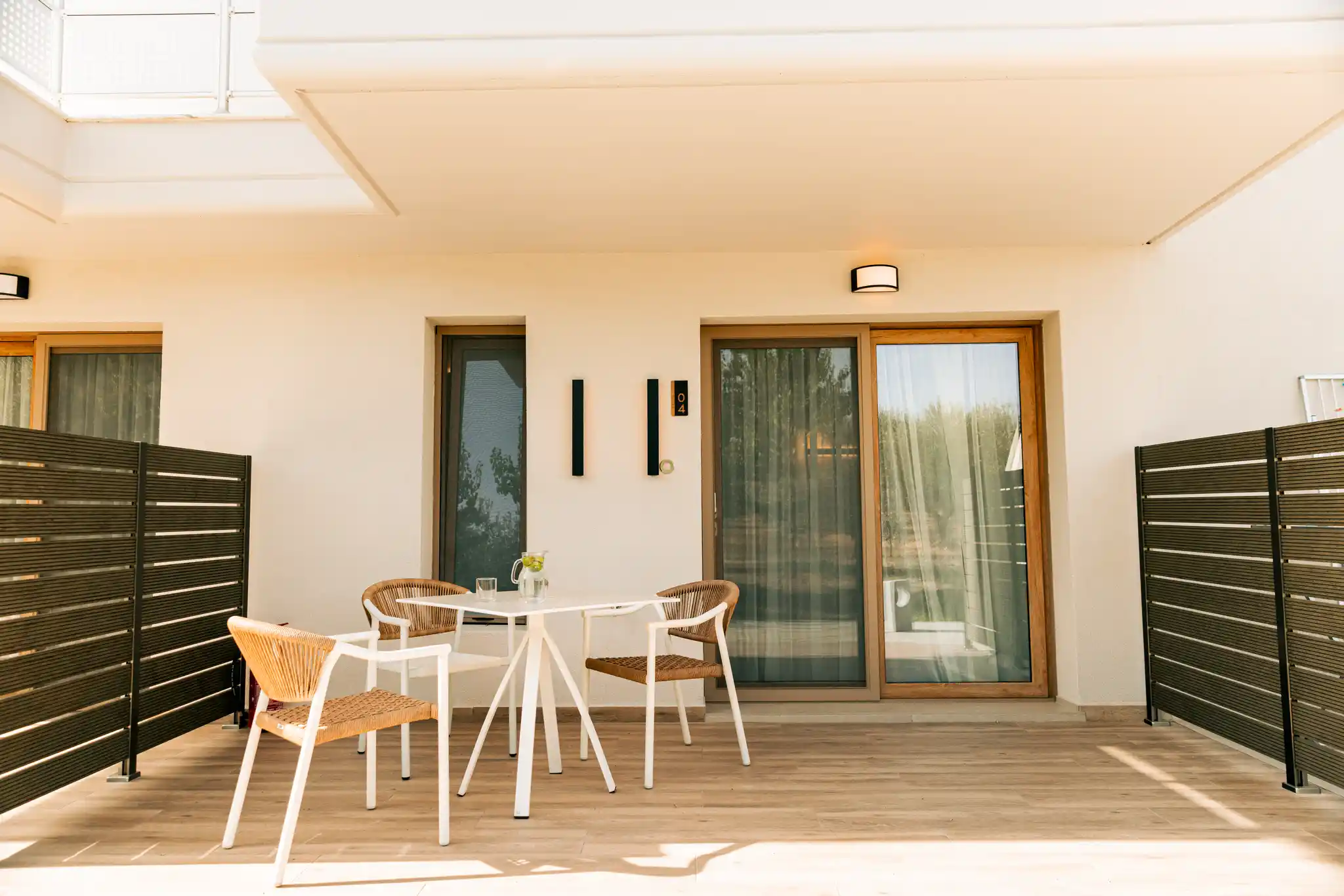 The Deluxe Double Room 04, with a total area of 24 sq.m., is located on the ground floor, offers maximum comfort and can accommodate up to 3 guests. It is the ideal choice for couples, small families, or visitors seeking high-quality accommodation with premium amenities.