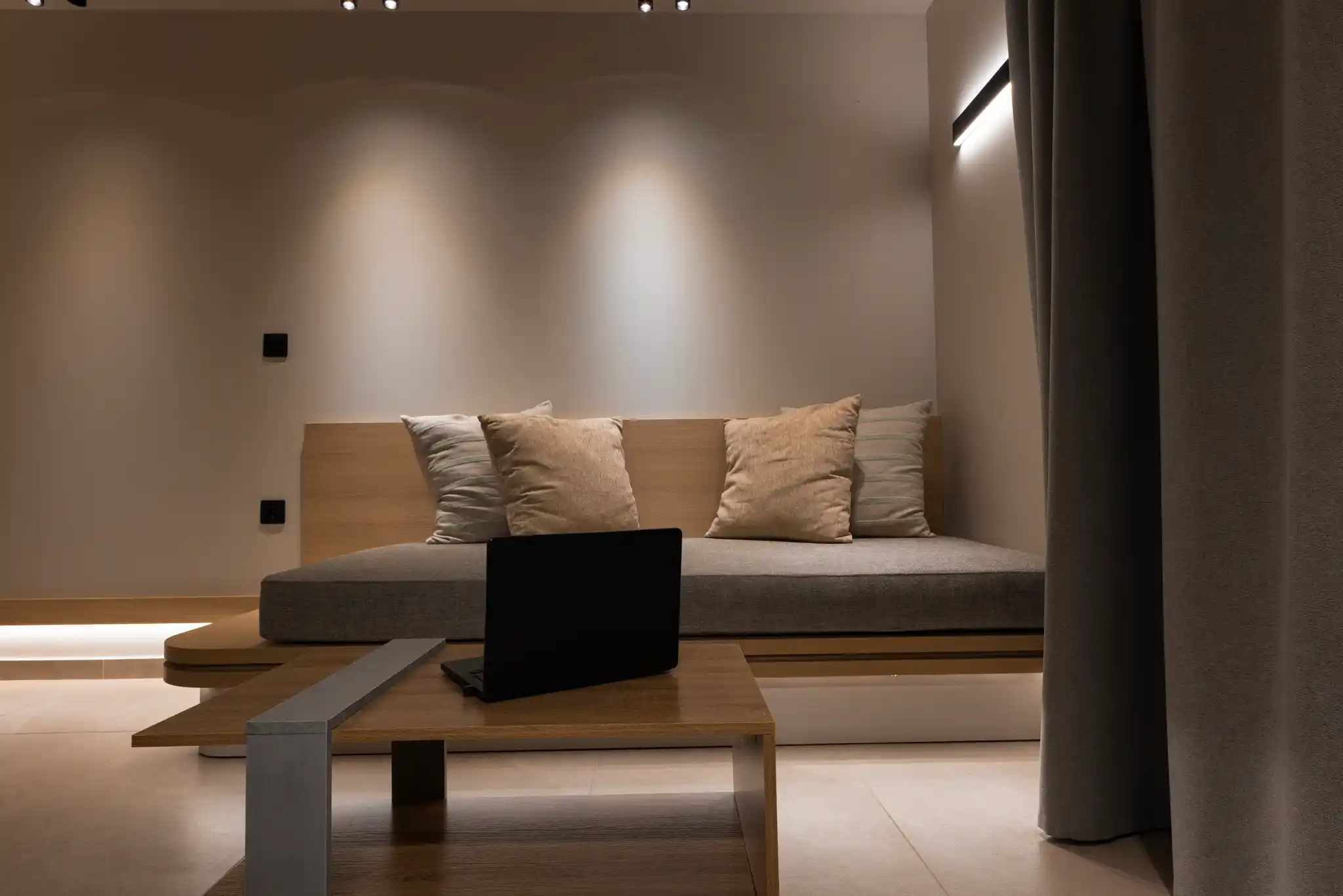 The room includes a double bed with an anatomical mattress (1.60 x 2.00 m), as well as a sofa bed with a reinforced sleeping mattress, ensuring a truly comfortable and restful sleep.