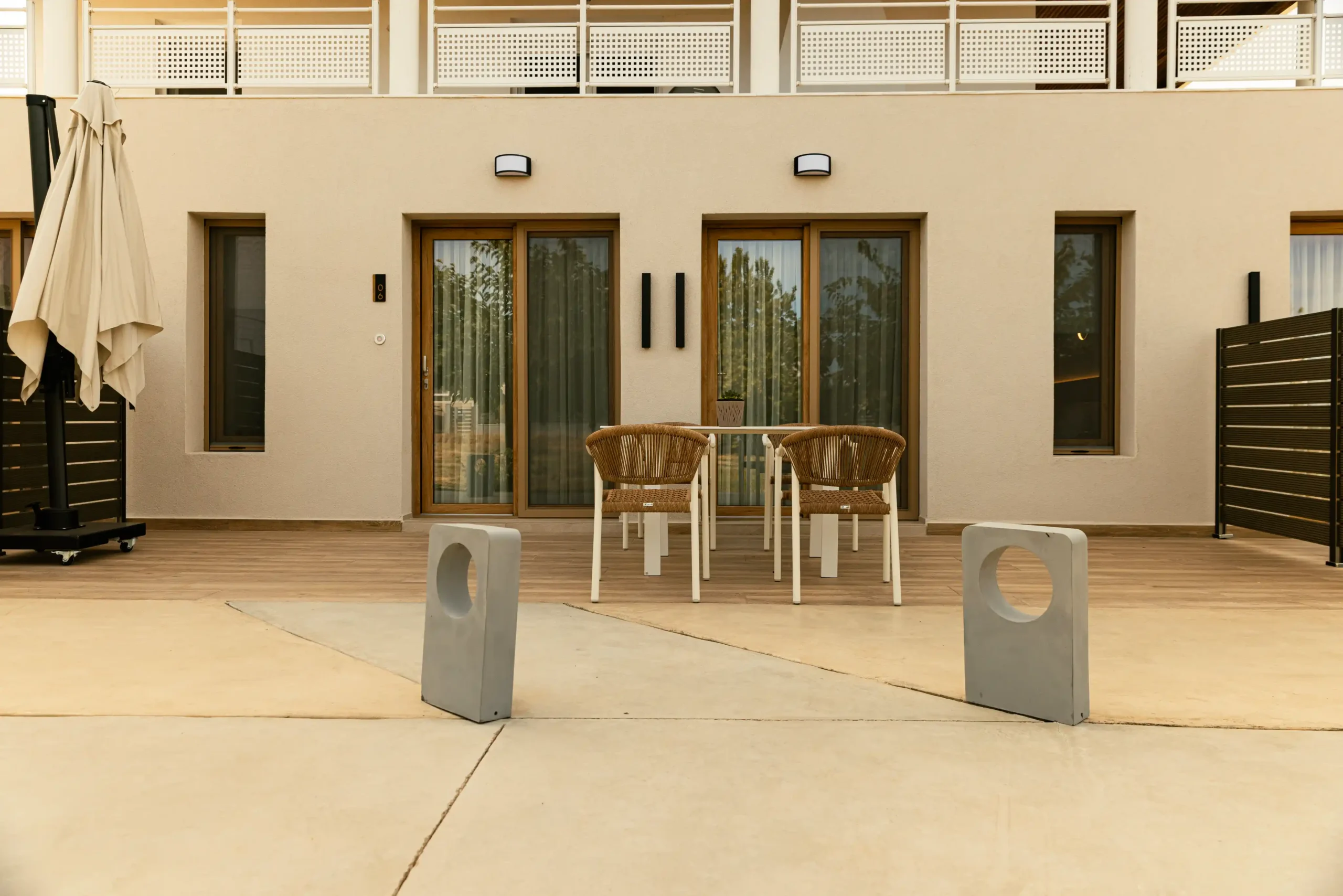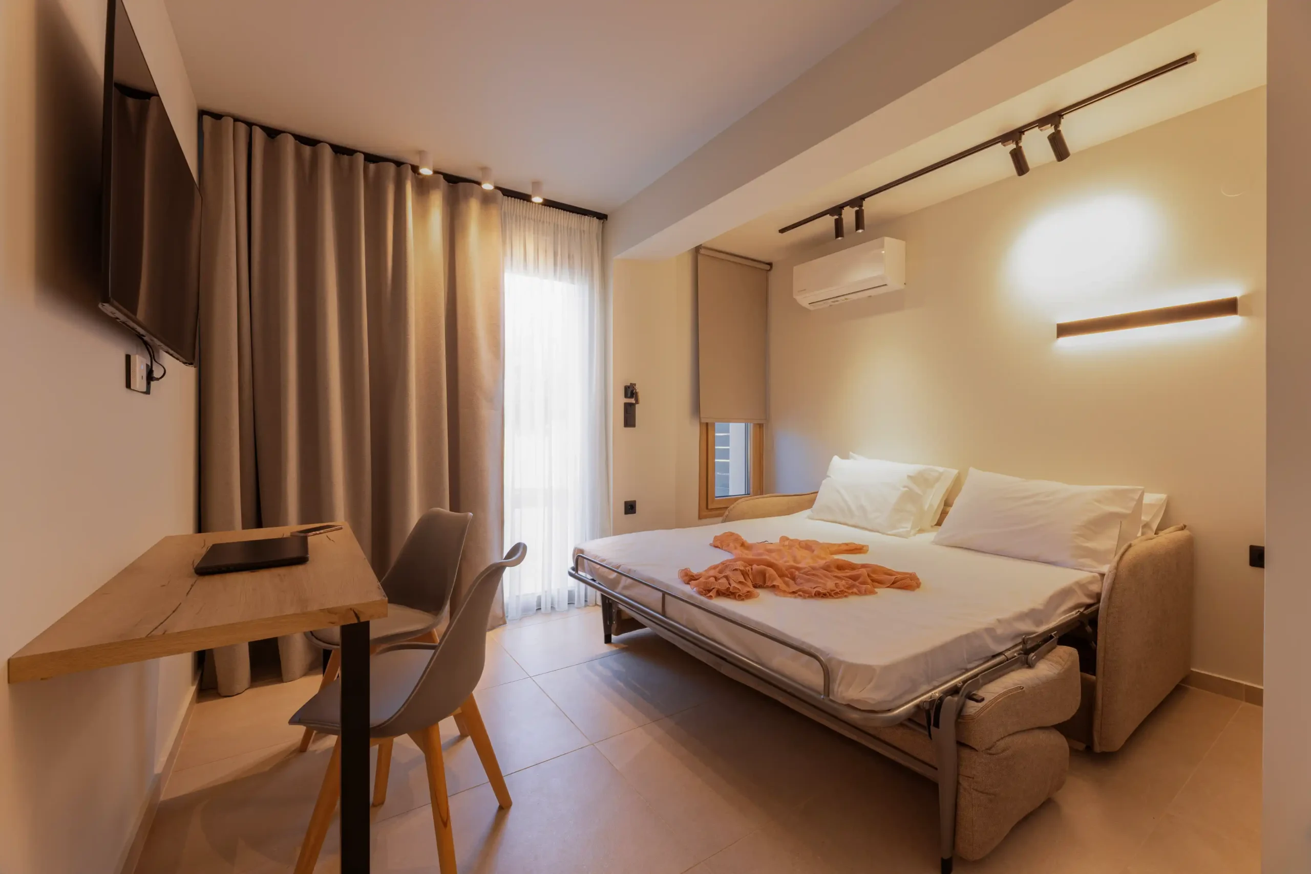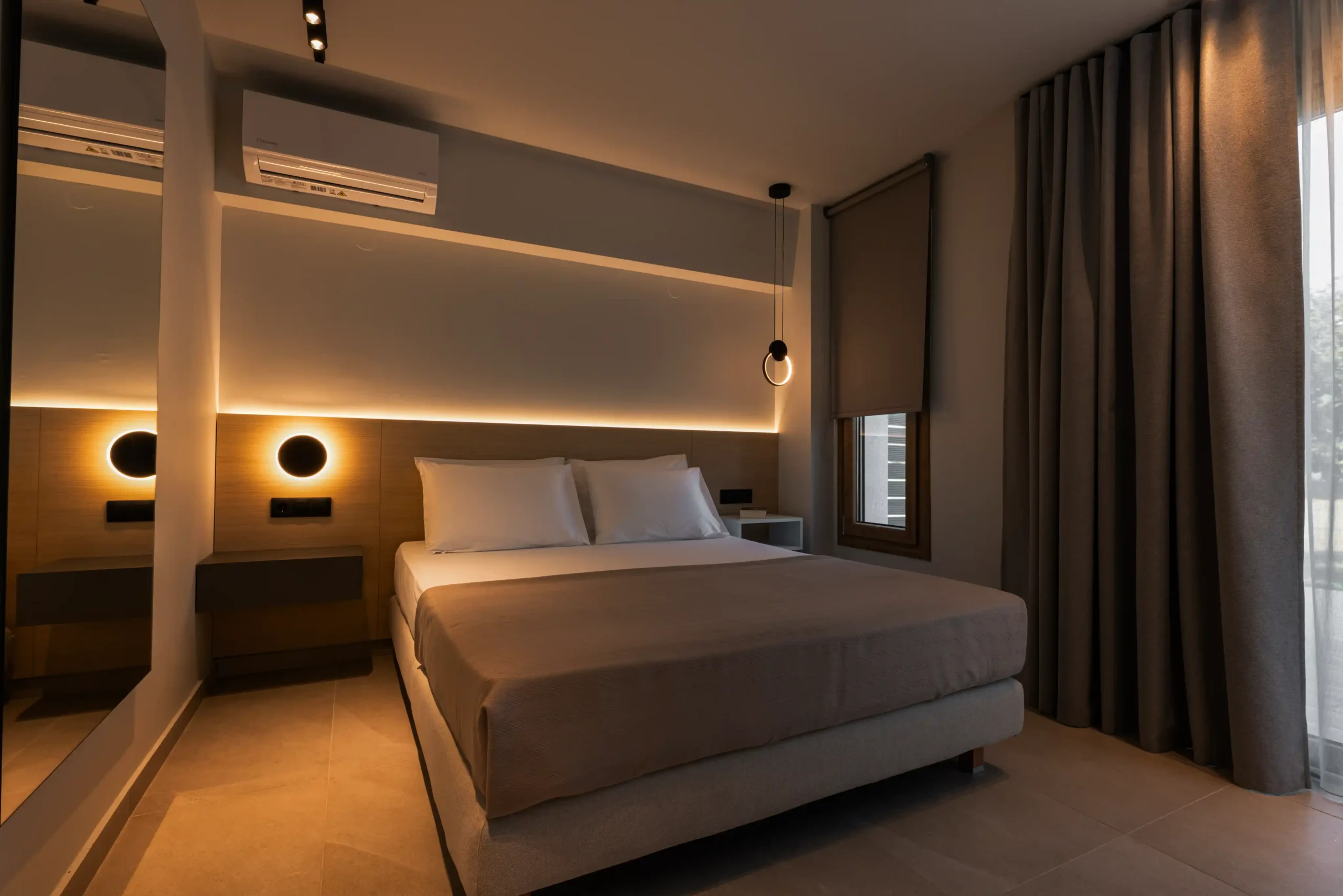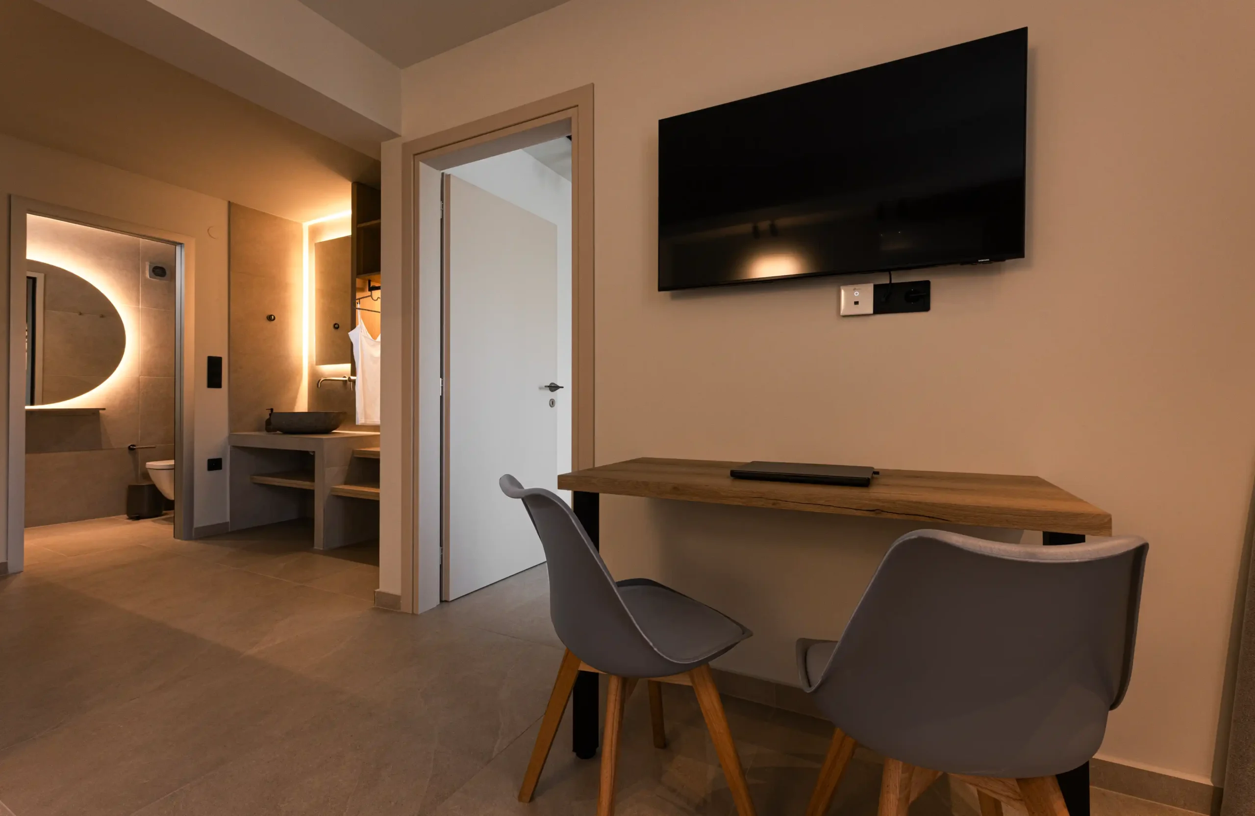 The Junior Family Suite 06, with a total area of 33 m², offers an elegantly designed space where comfort meets effortless luxury. It is ideal for families or small groups of up to 4 guests seeking a refined and relaxing stay in Sarti.